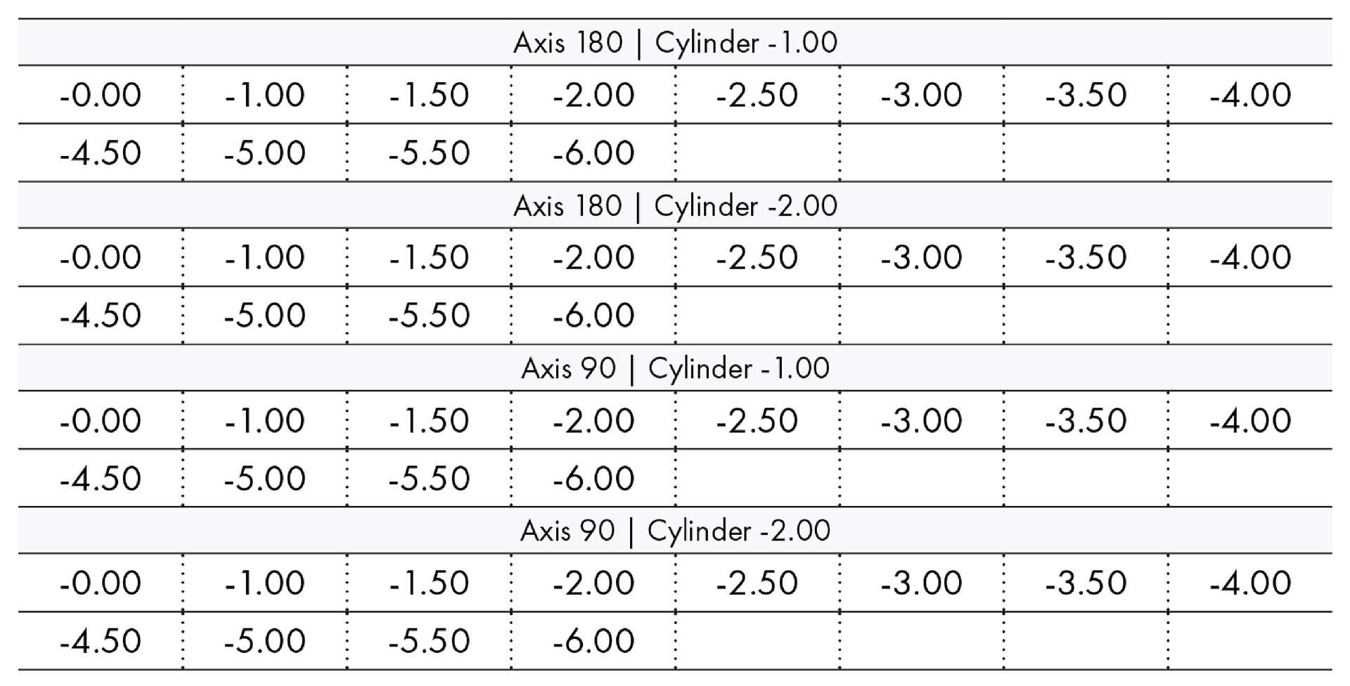· 난시(A), 도수(D) 지원